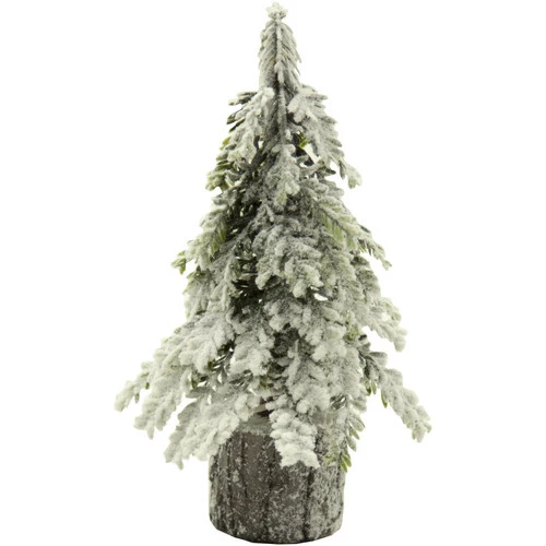 Sapin miniature avec finition neige, il tient sur son joli petit socle imitation rondin de bois. Il pourra decorer votre table lors des fetes de fin d’annee mais aussi apporter une touche sylvestre a votre decoration interieure. Hauteur 21 cm. Vous pouvez l?habiller de lumiere et le retrouver dans differentes tailles.