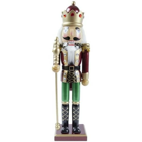 Succombez a la folie des casse-noisettes en bois. Piece incontournable et tendance, il s’ajoutera parfaitement a votre decoration. Bouche articulee tel un vrai casse-noisettes, avec couronne et sceptre. Couleur bordeaux. Hauteur 38 cm.