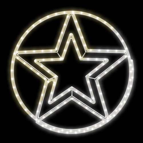 Motif double etoile pour une decoration interieure et exterieure. Changez la couleur des LED en blanc ou blanc chaud pour encore plus d’effet. Plusieurs animations possibles. Diametre 76 cm. a brancher sur secteur.