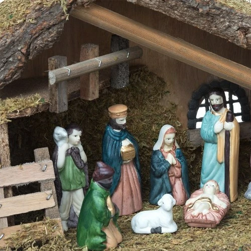 Crèche de Noël 10 santons porcelaineCréez la plus belle des ambiances pour Noël avec cette crèche et ses 10 santons en porcelaine.De dimensions 22 x 14 x 38 cm, elle trouvera sa place proche du sapin.Informations sur la crèche de Noël 10 santons porcelaine :Personnages : Jésus, Marie, Joseph et 3 animauxDimensions : L. 22 x l. 14 x H. 38 cmPoids : 930 gMatière : bois, porcelaine