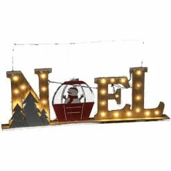 Décoration lumineuse LED N O E LCréez la plus belle des ambiances pour Noël avec cette décoration lumineuse LED N O E L délivrant une lumière fixe blanc chaud.De dimensions 44 x 4 x 22 cm, elle trouvera sa place proche du sapin, en intérieur seulement.Informations sur la décoration lumineuse LED N O E L :Dimensions : L. 44 x Ep. 4 x H. 22 cmFonctionne avec 2 piles AA (non incluses)Matière : MDF