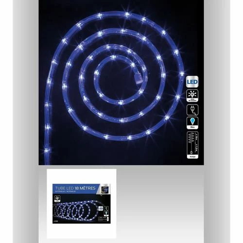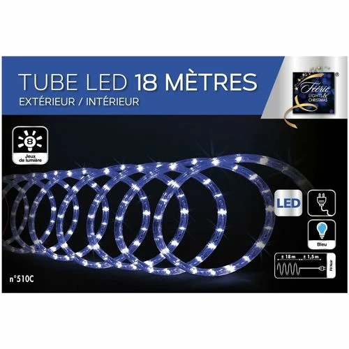 Illuminez vos intérieurs et extérieurs avec ce tube LED et ses 8 jeux lumineux préprogrammés.FICHE TECHNIQUE- Guirlande tube LED en PVC et en cuivre.- 8 jeux de lumière à choisir.- Lumière Bleue.- Alimentation et puissance guirlande : 230 V – 21,5 W – 50 Hz.- Utilisation en intérieur ou extérieur.- Matière : PVC et Polychlorure de vinyle.- 324 Ampoules LED, non remplaçables.CARACTERISTIQUES TECHNIQUES- Dimensions : L. 1800 cm.- Diamètre du cordon : 10 mm environ.- Dimensions totale avec le câble d’alimentation : 19,5 m.- Poids : 2,3 kg.