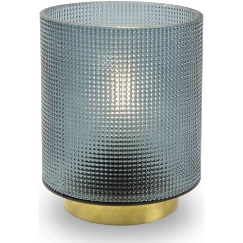Succombez a cette lampe Art Deco en verre texture couleur bleu gris agrementee d’un socle couleur or. Cette lampe au style vintage tres tendance est LA piece intemporelle qu’il faudra a votre decoration. Au dela d’une lanterne, elle vous servira comme une veritable lampe d’appoint. Hauteur 15 cm et diametre 12 cm. Ampoule integree. Fonctionne avec des piles.