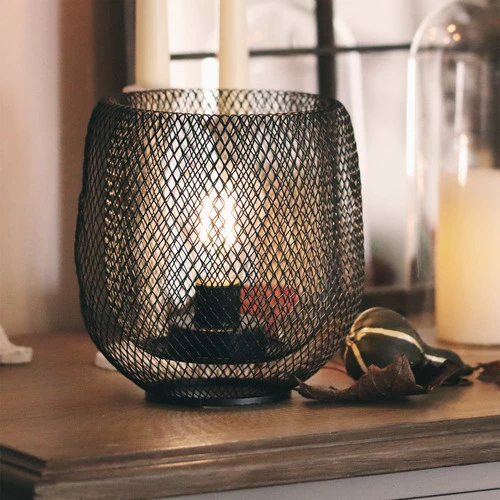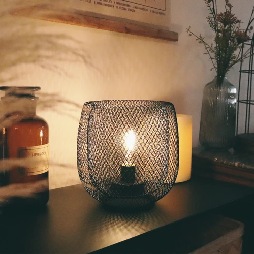 Decoration moderne avec cette lanterne metallique qui avec son ampoule LED appartera une lumiere tendance. H18.5cm Fonctionne avec des piles.
