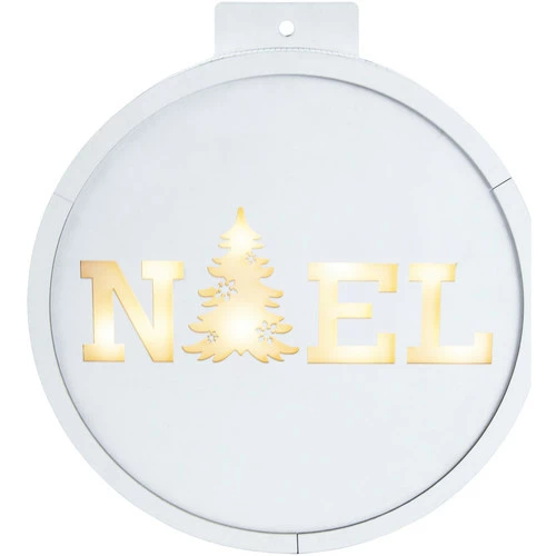 Reproduisez un Noel a la montagne en apportant un c?te chaleureux a votre decoration de Noel grace a cette suspension ronde en bois blanc. S’illumine grace a des LED couleur blanc chaud. H30,3cm x L28cm x l3,2 cm. Fonctionne avec des piles.