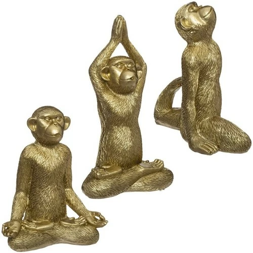 Objet résine ours sagesse singe yoga doré 17 cm X3Apportez une touche de sagesse et de zen à votre intérieur en décorant votre maison avec ce magnifique lot de 3 singes yoga dorés de 17 cm de hauteur, très tendance pour une décoration relaxante.Informations sur le singe yoga doré 17 cm X3 :Dimensions d’un singe : L. 14,2 x P. 8 x H. 17 cmMatière : polyrésinePoids : 329 g