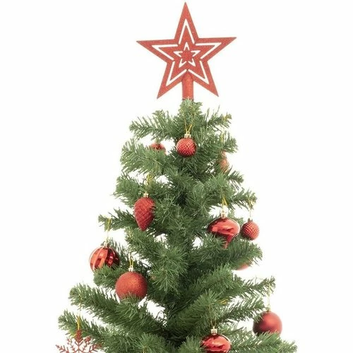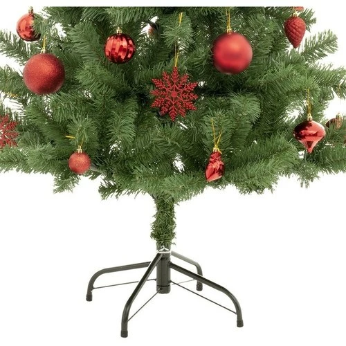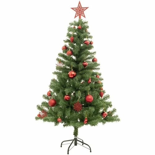 Sapin de Noël décoré 150 cmHabillez votre intérieur des couleurs de Noël grâce a ce sapin de Noël décoré de 150 cm de hauteur avec cimier et boules. Vous n’avez plus qu’à l’installer, tout est prêt.Pratique, il se range facilement pour être réutilisé chaque année.Informations sur le sapin de Noël décoré 150 cm :Dimensions : D. 84 x H. 150 cmPieds en métalSapin en 2 parties18 branches293 brinsPoids : 2,9 kgMatière : PVC, acier