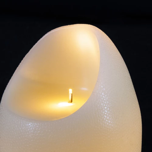 Bougie ?uf avec LED couleur blanc chaud. Pratique avec son timer grace auquel vous pourrez programmer l?allumage tous les jours a une certaine heure et une extinction automatique. Cire veritable. Hauteur 14 cm et diametre 11 cm. Fonctionne avec des piles.