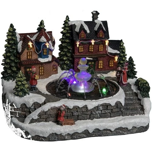 Village de Noël la fontaine avec enfants 10 LEDRéalisez le plus beau des décors de Noël grâce à ce village de Noël représentant un décor de la fontaine avec enfants. Créez une ambiance de fête qui émerveillera petits et grands. Le village s’illumine et les personnages s’animent pour plus de magie.Informations sur le Village de Noël la fontaine avec enfants 10 LED :Dimensions : L. 25,2 x l. 18 x H. 21 cmLumineux et animé10 LEDMatière : plastiqueUtilisation intérieure uniquementFonctionne sur secteur