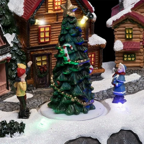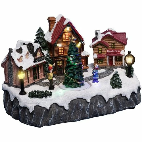 Village de Noël place du village 7 LEDRéalisez le plus beau des décors de Noël grâce à ce village de Noël représentant un décor de place du village. Créez une ambiance de fête qui émerveillera petits et grands. Le village s’illumine et les personnages s’animent pour plus de magie.Informations sur le Village de Noël place du village 7 LED :Dimensions : L. 21,5 x l. 12 x H. 13,5 cmLumineux et animé7 LED multicoloresMatière : plastiqueUtilisation intérieure uniquementFonctionne avec 3 piles AA (non incluses)