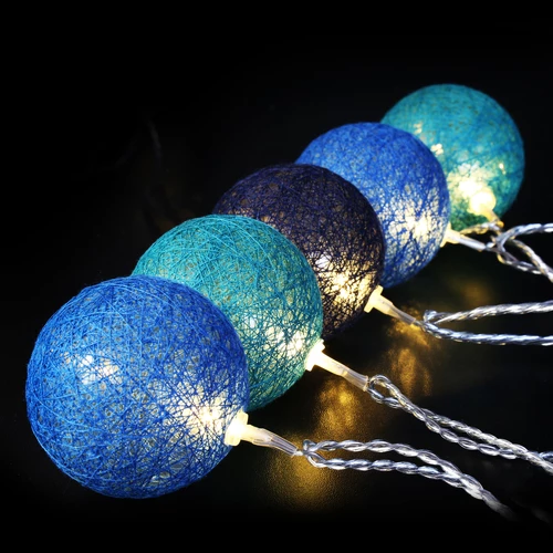 Succombez a cette guirlande intemporelle composee de boules en fil coton couleur camaieu de bleu d’une longueur de 6m. Chaque boule est renforcee par une coque. Parfaite pour decorer tout en douceur une chambre, contours de fenetres, buffets ou tablees… Guirlande composee de 20 boules. a brancher sur secteur.